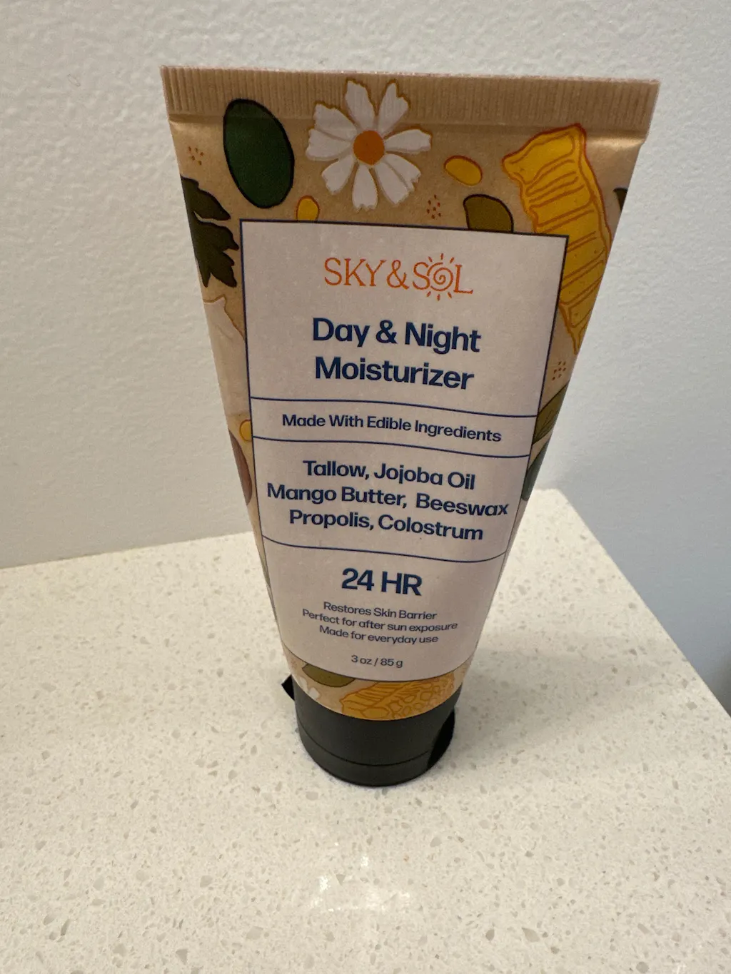 Your skin produces a unique blend of natural oils that’s tough to replicate—so we don’t try to fake it. At Sky and Sol, we formulated the Everything Cream with grass-fed beef tallow because its fat profile is bioidentical to your skin’s own lipids.