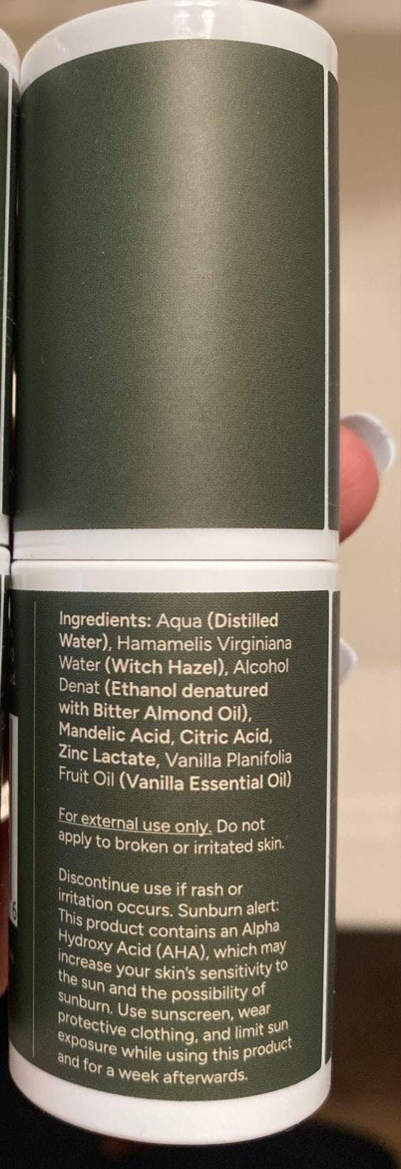 Primal Cleanse Spray: Water, Witch Hazel, Ethyl Alcohol, Mandelic Acid, Citric Acid, Zinc Lactate, Vanilla Essential Oil