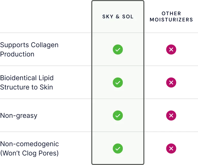 Your skin produces a unique blend of natural oils that’s tough to replicate—so we don’t try to fake it. At Sky and Sol, we formulated the Everything Cream with grass-fed beef tallow because its fat profile is bioidentical to your skin’s own lipids.