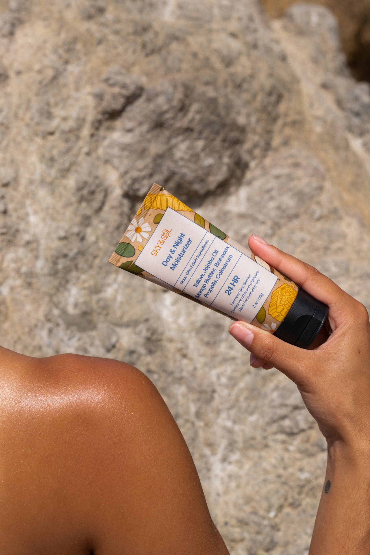 Your skin produces a unique blend of natural oils that’s tough to replicate—so we don’t try to fake it. At Sky and Sol, we formulated the Everything Cream with grass-fed beef tallow because its fat profile is bioidentical to your skin’s own lipids.