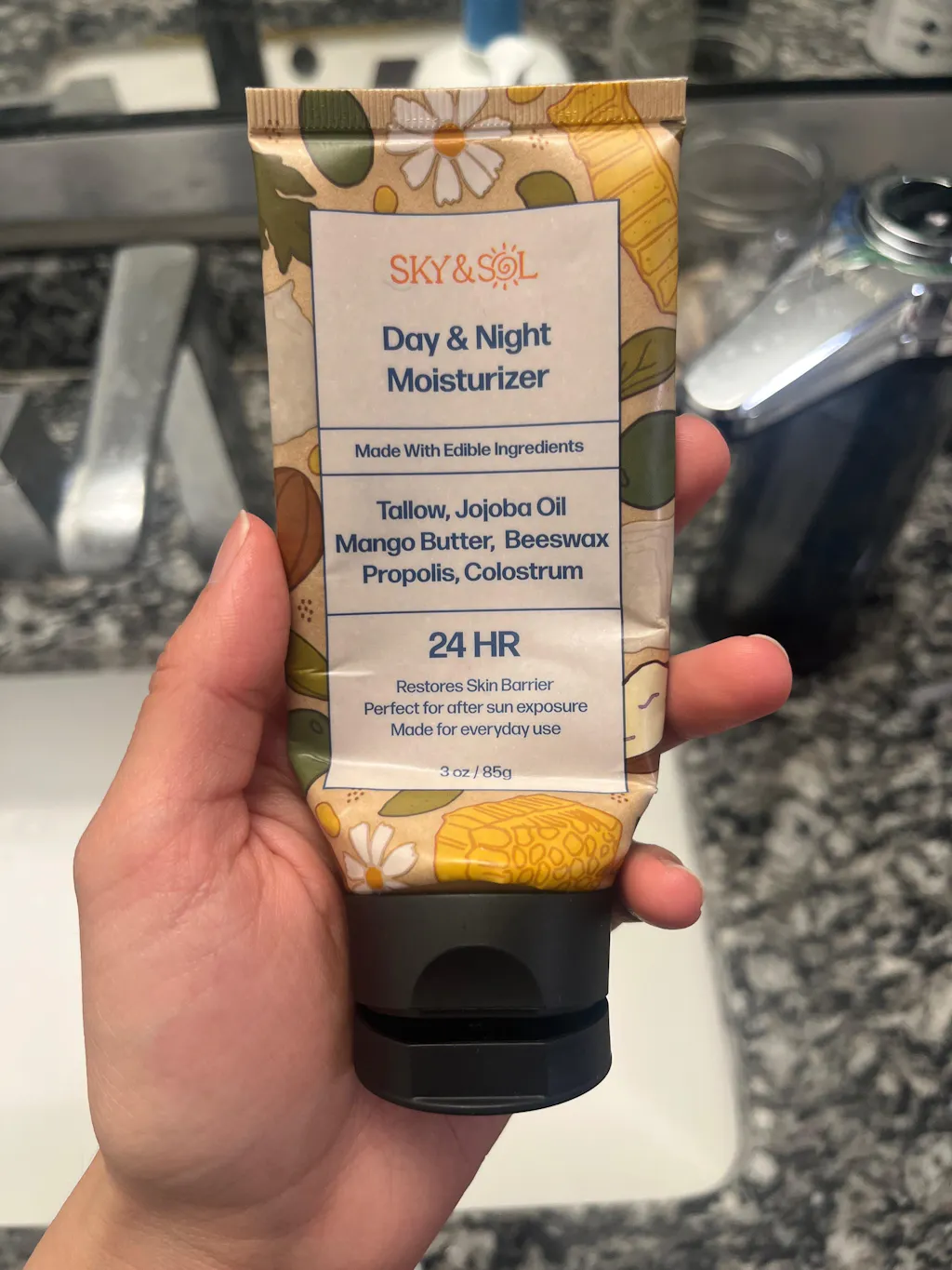 Your skin produces a unique blend of natural oils that’s tough to replicate—so we don’t try to fake it. At Sky and Sol, we formulated the Everything Cream with grass-fed beef tallow because its fat profile is bioidentical to your skin’s own lipids.