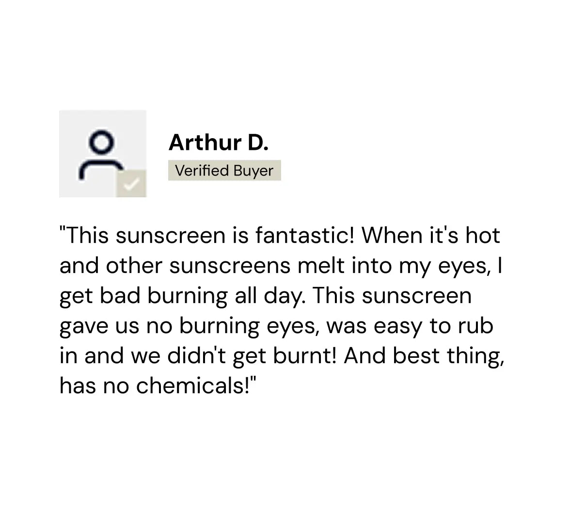 Our gentle mineral formula is designed to be kind to eyes. Unlike chemical sunscreens that can burn, zinc oxide sits on the skin surface and won't migrate into eyes with sweat.